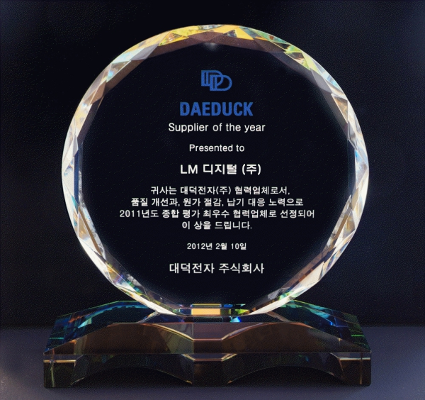 2012년 2월 10일 대덕전자(주) 최우수 협력업체로 선정
